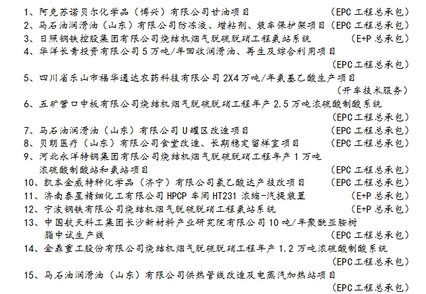 EPC工程總承包、工程項目管理主要業績